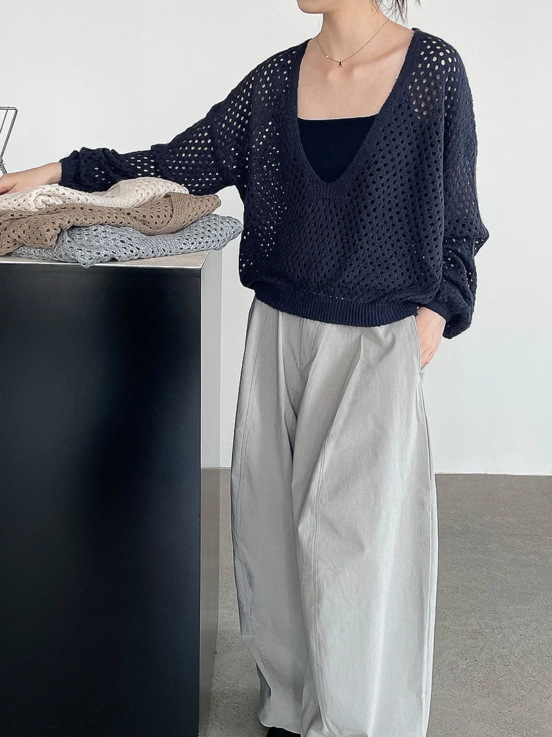 Deep V cut-out knitted cardigan + halter top two-piece set